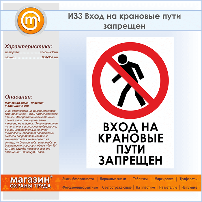 Знак «Вход на крановые пути запрещен», И33 (пластик, 600х900 мм) в Красноярске купить