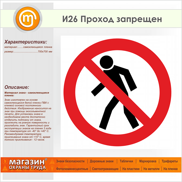 Знак «Проход запрещен», И26 (пленка, 700х700 мм) в Красноярске купить