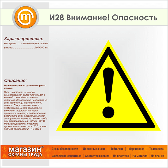 Знак «Внимание! Опасность», И28 (пленка, сторона 700 мм) в Красноярске купить