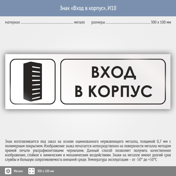 Знак «Вход в корпус», И10 (металл, 300х100 мм) в Красноярске купить