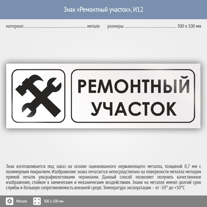 Знак «Ремонтный участок», И12 (металл, 300х100 мм) в Красноярске купить