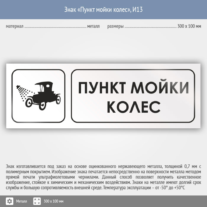 Знак «Пункт мойки колес», И13 (металл, 300х100 мм) в Красноярске купить