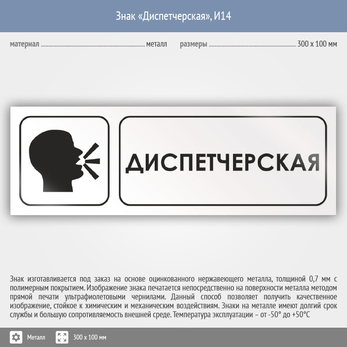 Знак «Диспетчерская», И14 (металл, 300х100 мм) в Красноярске купить