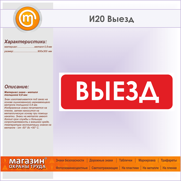 Знак «Выезд», И20 (металл, 900х300 мм) в Красноярске купить