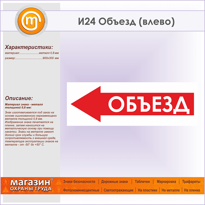 Знак «Объезд (влево)», И24 (металл, 900х300 мм) в Красноярске купить