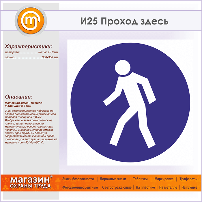Знак «Проход здесь», И25 (металл, 300х300 мм) в Красноярске купить