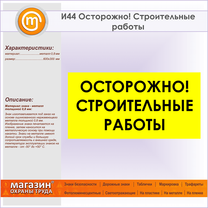 Знак «Осторожно! Строительные работы», И44 (металл, 600х300 мм) в Красноярске купить