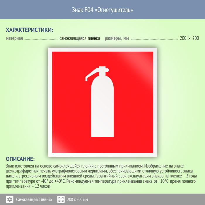 Знак F04 «Огнетушитель» (пленка, 150х150 мм) в Красноярске купить