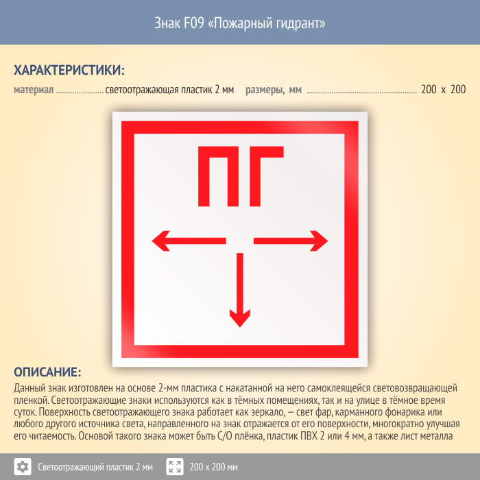 Знак F09 «Пожарный гидрант» (светоотражающий пластик, 200х200 мм) в Красноярске купить