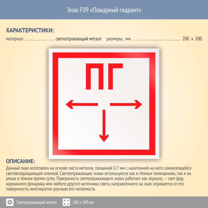 Знак F09 «Пожарный гидрант» (светоотражающий металл, 200х200 мм) в Красноярске купить