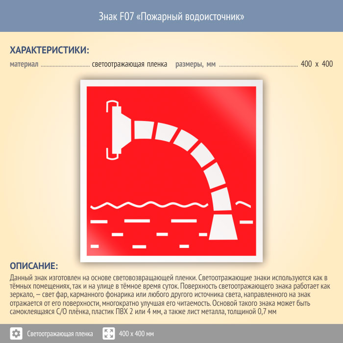 Знак F07 «Пожарный водоисточник» (светоотражающая пленка, 400х400 мм) в Красноярске купить