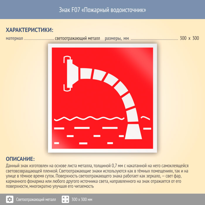 Знак F07 «Пожарный водоисточник» (светоотражающий металл, 300х300 мм) в Красноярске купить