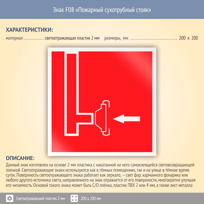 Знак F08 «Пожарный сухотрубный стояк» (светоотражающий пластик, 200х200 мм) в Красноярске купить