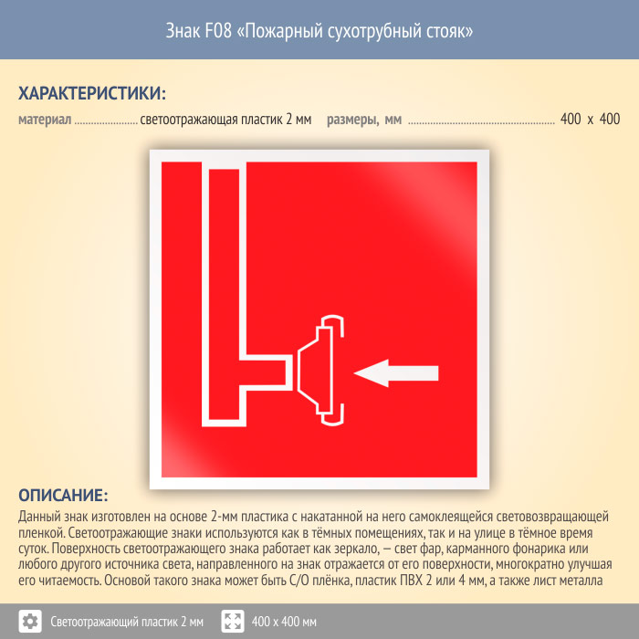 Знак F08 «Пожарный сухотрубный стояк» (светоотражающий пластик, 400х400 мм) в Красноярске купить