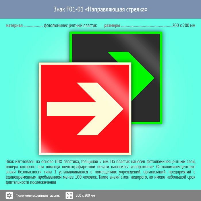 Знак F01-01 «Направляющая стрелка» (фотолюминесцентный пластик, 200х200 мм) в Красноярске купить