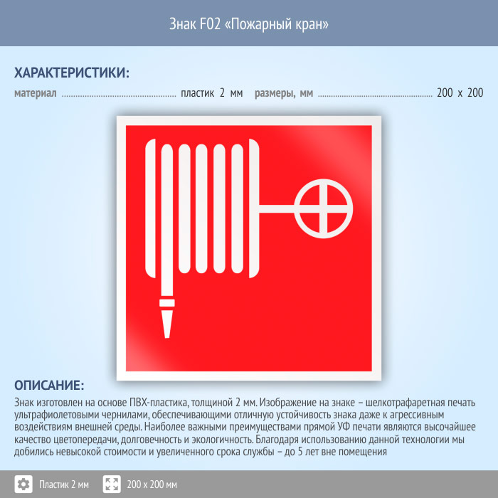 Знак F02 «Пожарный кран» (пластик, 200х200 мм) в Красноярске купить