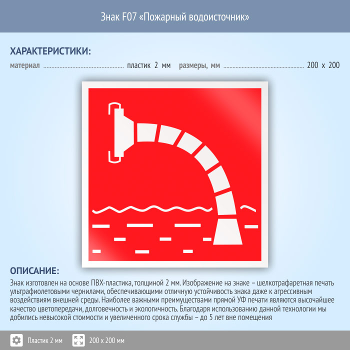 Знак F07 «Пожарный водоисточник» (пластик, 200х200 мм) в Красноярске купить
