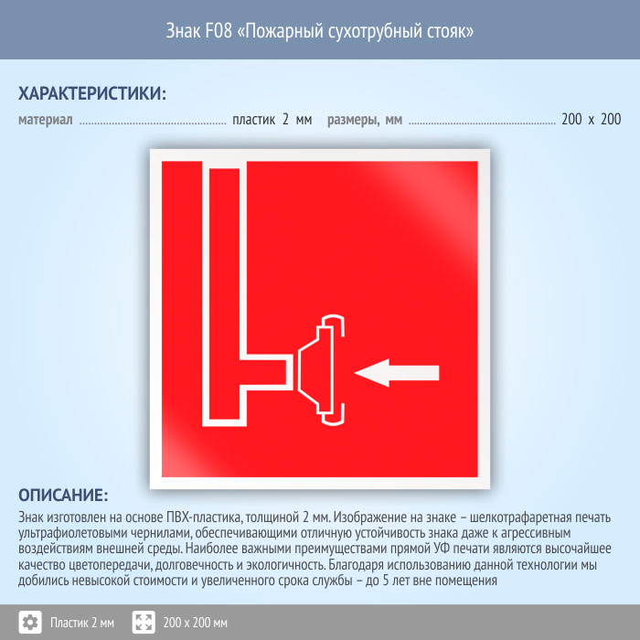 Знак F08 «Пожарный сухотрубный стояк» (пластик, 200х200 мм) в Красноярске купить
