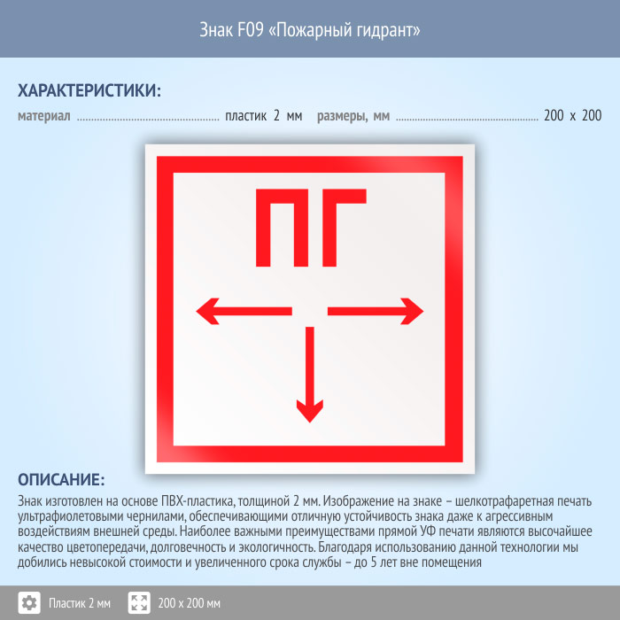 Знак F09 «Пожарный гидрант» (пластик, 200х200 мм) в Красноярске купить