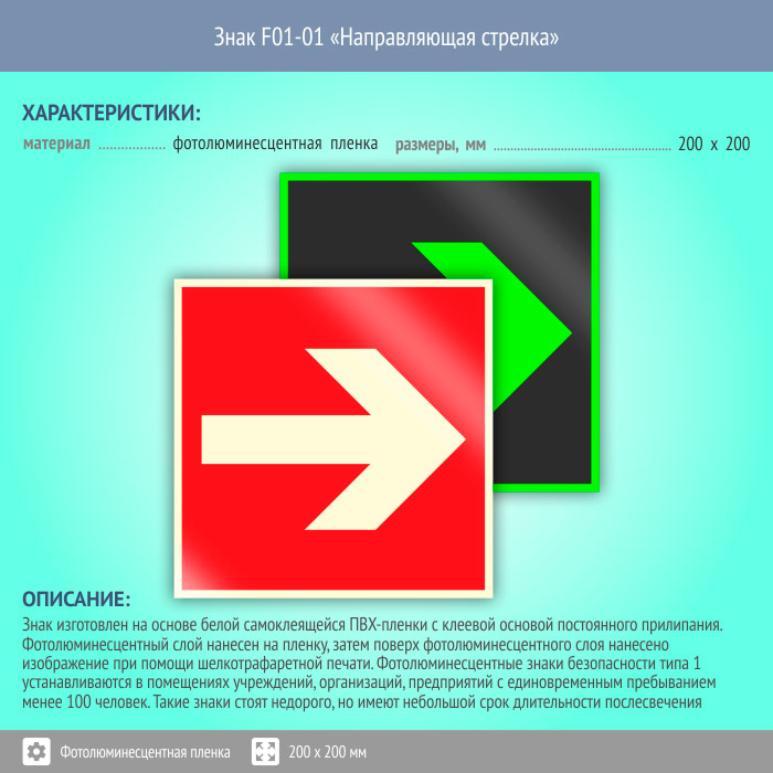 Знак F01-01 «Направляющая стрелка» (фотолюминесцентная пленка, 200х200 мм) в Красноярске купить