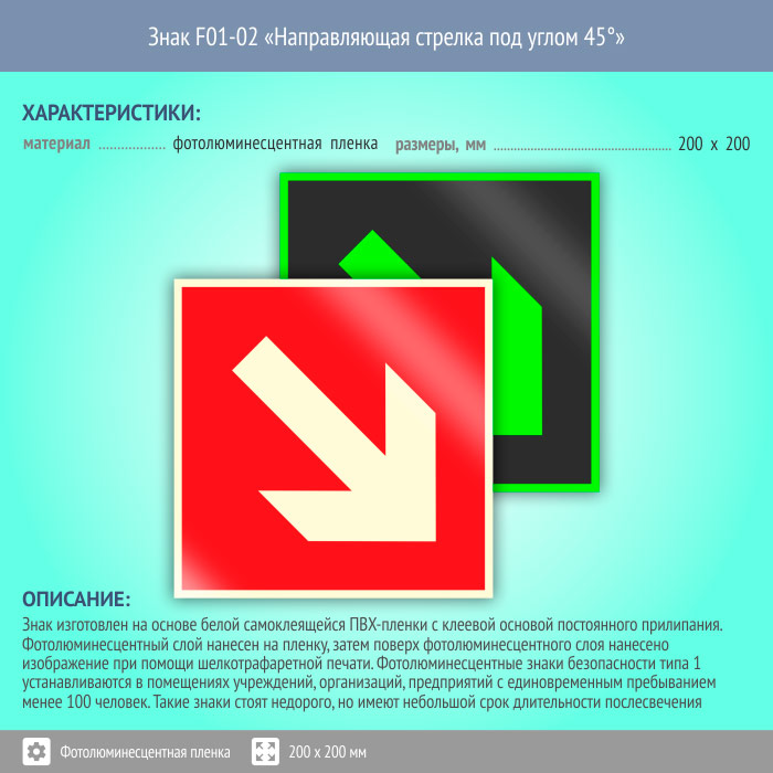 Знак F01-02 «Направляющая стрелка под углом 45°» (фотолюминесцентная пленка, 200х200 мм) в Красноярске купить