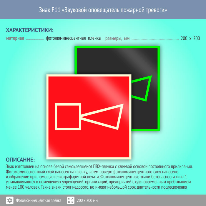 Знак F11 «Звуковой оповещатель пожарной тревоги» (фотолюминесцентная пленка, 200х200 мм) в Красноярске купить