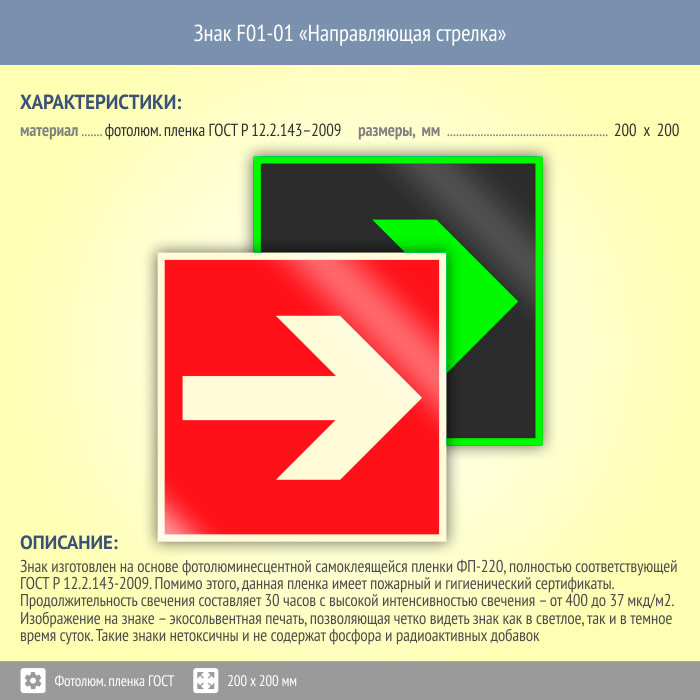 Знак F01-01 «Направляющая стрелка» (фотолюминесцентная пленка ГОСТ 34428-2018, 200х200 мм) в Красноярске купить