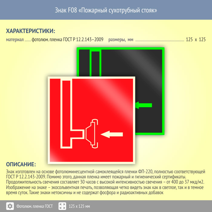 Знак F08 «Пожарный сухотрубный стояк» (фотолюминесцентная пленка ГОСТ 34428-2018, 125х125 мм) в Красноярске купить