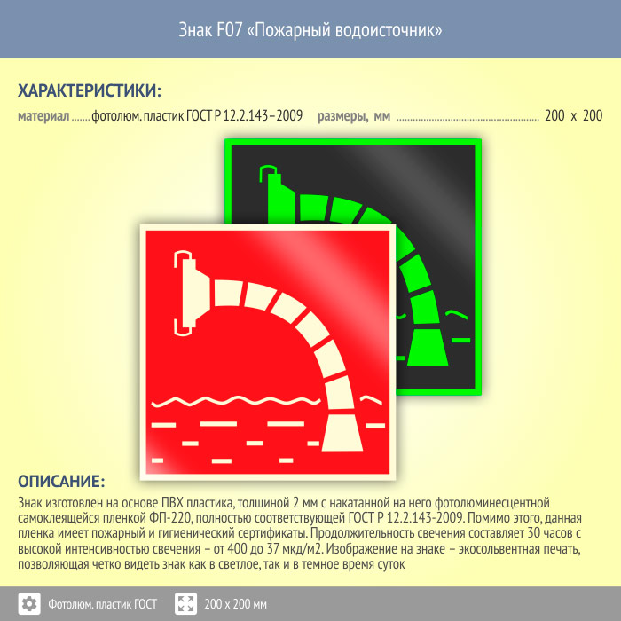 Знак F07 «Пожарный водоисточник» (фотолюминесцентный пластик ГОСТ 34428-2018, 200х200 мм) в Красноярске купить