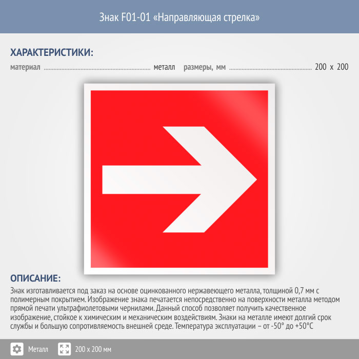 Знак F01-01 «Направляющая стрелка» (металл, 200х200 мм) в Красноярске купить