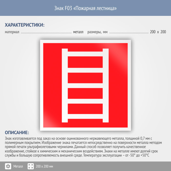Знак F03 «Пожарная лестница» (металл, 200х200 мм) в Красноярске купить