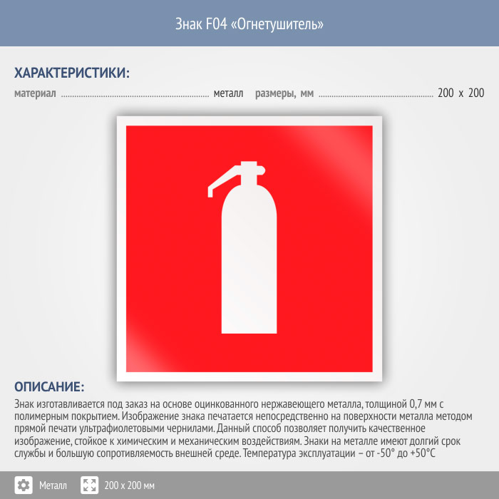 Знак F04 «Огнетушитель» (металл, 200х200 мм) в Красноярске купить