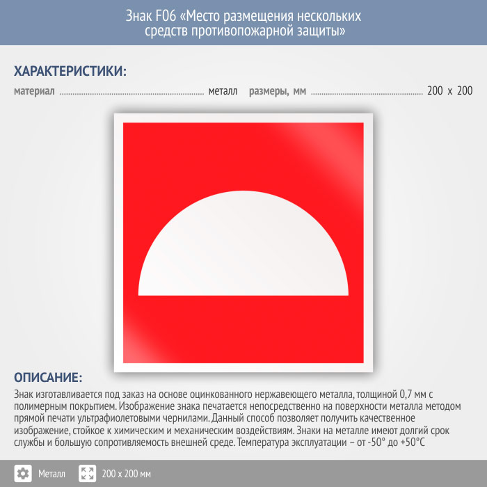 Знак F06 «Место размещения нескольких средств противопожарной защиты» (металл, 200х200 мм) в Красноярске купить